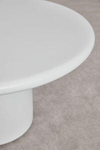 Apvalus NAQUERCO stalas šešiems asmenims yra puikus balanso tarp solidumo ir vizualinio lengvumo pavyzdys. Baltas matinis cemento masės paviršius subtiliai atspindi šviesą, todėl erdvė vizualiai atrodo didesnė ir šviesesnė. Cemento masė su stiklo pluoštu užtikrina, kad baldas išliks stabilus net ir stipraus vėjo metu.