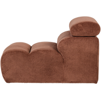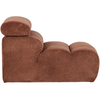 **Stilingas sofos elementas**. Reguliuojama kaklo atrama. Unikalus ir kūrybiškas dizainas. Medžiaga: Mūsų **Ronni** yra **minkštas, briaunotas audinys**. Sudėtis: **88% poliesteris** ir **12% poliakrilas**. Martindale įvertinimas: **100 000**, tinka kasdieniam naudojimui. Audinys yra **stilingas ir patogus**. Matmenys: Aukštis: **86 cm**. Plotis: **82 cm**. Gylis: **113 cm**. Sėdynės aukštis: 45 cm. Svoris: 26 kg. Keliamoji galia: **120 kg**. Priežiūra: Valykite reguliariai. Dėmes valykite kryptimi, kuria eina briauna. Naudokite šiek tiek drėgną, švarią šluostę. Prireikus švelniai nušveiskite **minkštu šepečiu**. Pristatymas: Elementai lengvai surenkami naudojant jau sumontuotus sujungimus.