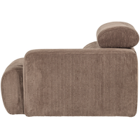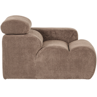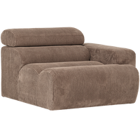 **Stilingas sofos elementas**. Reguliuojama kaklo atrama. Unikalus ir kūrybiškas dizainas. Medžiaga: Mūsų **Ronni** yra **minkštas, briaunotas audinys**. Sudėtis: **88% poliesteris** ir **12% poliakrilas**. Martindale įvertinimas: **100 000**, tinka kasdieniam naudojimui. Audinys yra **stilingas ir patogus**. Matmenys: Aukštis: **86 cm**. Plotis: **109 cm**. Gylis: **113 cm**. Sėdynės aukštis: 45 cm. Svoris: 40 kg. Keliamoji galia: **120 kg**. Priežiūra: Valykite reguliariai. Dėmes valykite kryptimi, kuria eina briauna. Naudokite šiek tiek drėgną, švarią šluostę. Prireikus švelniai nušveiskite **minkštu šepečiu**. Pristatymas: Elementai lengvai surenkami naudojant jau sumontuotus sujungimus.