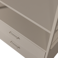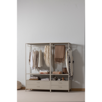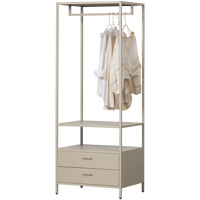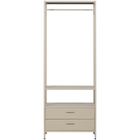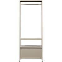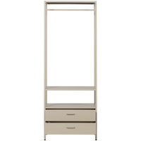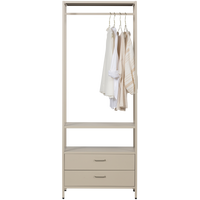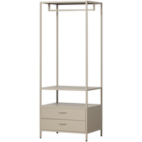 **Stilingas dizainas**. Daug vietos saugojimui. Pagaminta iš **metalo** su **smėlio spalvos atspalvio** milteline danga. Atvira drabužių kabykla padeda išlaikyti apžvalgą. Spinta turi du talpius stalčius. Medžiaga: Milteliais dengti metalai užtikrina prabangią išvaizdą ir apsaugą visam gyvenimui. Miltelinė danga suteikia pilną spalvų padengimą ir matinę arba (šiek tiek) blizgią apdailą. Matmenys: Aukštis: **185 cm**. Plotis: **70 cm**. Gylis: **54 cm**. Svoris: 25 kg. Svoris lentynoje: 30 kg. Svoris ant strypo: 26 kg. Priežiūra: Apdorotas metalas lengvai valomas **šiek tiek drėgna šluoste**. Siekiant **saugaus naudojimo**, aukštesnėms nei 50 cm spintoms rekomenduojama montuoti tvirtinimo prie sienos priemones. Pristatymas: Prekė pristatoma vienoje pakuotėje.