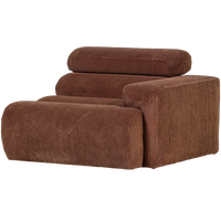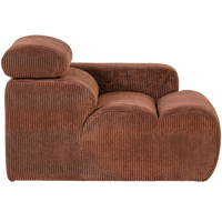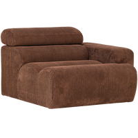 **Stilingas sofos elementas**. Reguliuojama kaklo atrama. Unikalus ir kūrybiškas dizainas. Medžiaga: Mūsų **Ronni** yra **minkštas, briaunotas audinys**. Sudėtis: **88% poliesteris** ir **12% poliakrilas**. Martindale įvertinimas: **100 000**, tinka kasdieniam naudojimui. Audinys yra **stilingas ir patogus**. Matmenys: Aukštis: **86 cm**. Plotis: **109 cm**. Gylis: **113 cm**. Sėdynės aukštis: 45 cm. Svoris: 40 kg. Keliamoji galia: **120 kg**. Priežiūra: Valykite reguliariai. Dėmes valykite kryptimi, kuria eina briauna. Naudokite šiek tiek drėgną, švarią šluostę. Prireikus švelniai nušveiskite **minkštu šepečiu**. Pristatymas: Elementai lengvai surenkami naudojant jau sumontuotus sujungimus.