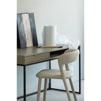 **Šiuolaikiška dizainerio kėdė**. Apmušta nuo viršaus iki apačios. Patogi, tvirta sėdynė. Medžiaga: Mūsų **Ash** odos imitacija atrodo šiuolaikiškai ir prabangiai. Audinys sudarytas iš **80% poliesterio ir 20% sintetinės dervos**. Dėl šio derinio audinys atrodo kaip tikra oda, bet yra lengvesnis ir lengviau prižiūrimas. **Ash** odos imitacija turi Martindale vertę **50 000** ir tinka kasdieniam naudojimui. Matmenys: Aukštis: **76 cm**. Plotis: **51 cm**. Gylis: **56 cm**. Sėdynės aukštis: 47 cm. Keliamoji galia: **120 kg**. Svoris: 14 kg. Priežiūra: Audinį valykite reguliariai sausa, minkšta šluoste. Dėmes? Valykite **šiek tiek drėgna šluoste be muilo**. Venkite ilgo saulės spindulių poveikio. Pristatymas: Prekė pristatoma vienoje pakuotėje, **dviejų dalių rinkiniais**, visiškai surinkta.
