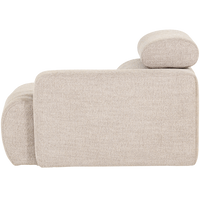 **Stilingas sofos elementas**. Reguliuojama kaklo atrama. Unikalus ir kūrybiškas dizainas. Medžiaga: Mūsų **Rilo** yra **minkštas, buklė audinys**. Sudėtis: **100% poliesteris**. Martindale įvertinimas: **100 000**, tinka kasdieniam naudojimui. Matmenys: Aukštis: **86 cm**. Plotis: **109 cm**. Gylis: **113 cm**. Sėdynės aukštis: 45 cm. Svoris: 40 kg. Keliamoji galia: **120 kg**. Priežiūra: Valykite reguliariai siurbliuodami su **minkštu šepečiu**. Dėmėms naudokite vandens pagrindo tirpalą, **švelniai nuvalykite** drėgna šluoste. **Netrinkite, tik nusausinkite**. Venkite ilgo tiesioginio saulės spindulių poveikio. Pristatymas: Elementai lengvai surenkami naudojant jau sumontuotus sujungimus.