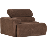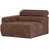 **Stilingas sofos elementas**. Reguliuojama kaklo atrama. Unikalus ir kūrybiškas dizainas. Medžiaga: Mūsų **Ronni** yra **minkštas, briaunotas audinys**. Sudėtis: **88% poliesteris** ir **12% poliakrilas**. Martindale įvertinimas: **100 000**, tinka kasdieniam naudojimui. Audinys yra **stilingas ir patogus**. Matmenys: Aukštis: **86 cm**. Plotis: **109 cm**. Gylis: **113 cm**. Sėdynės aukštis: 45 cm. Svoris: 40 kg. Keliamoji galia: **120 kg**. Priežiūra: Valykite reguliariai. Dėmes valykite kryptimi, kuria eina briauna. Naudokite šiek tiek drėgną, švarią šluostę. Prireikus švelniai nušveiskite **minkštu šepečiu**. Pristatymas: Elementai lengvai surenkami naudojant jau sumontuotus sujungimus.