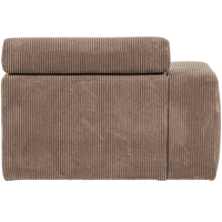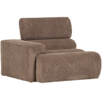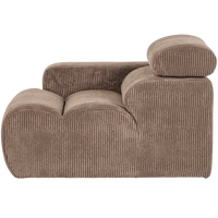 **Stilingas sofos elementas**. Reguliuojama kaklo atrama. Unikalus ir kūrybiškas dizainas. Medžiaga: Mūsų **Ronni** yra **minkštas, briaunotas audinys**. Sudėtis: **88% poliesteris** ir **12% poliakrilas**. Martindale įvertinimas: **100 000**, tinka kasdieniam naudojimui. Audinys yra **stilingas ir patogus**. Matmenys: Aukštis: **86 cm**. Plotis: **109 cm**. Gylis: **113 cm**. Sėdynės aukštis: 45 cm. Svoris: 40 kg. Keliamoji galia: **120 kg**. Priežiūra: Valykite reguliariai. Dėmes valykite kryptimi, kuria eina briauna. Naudokite šiek tiek drėgną, švarią šluostę. Prireikus švelniai nušveiskite **minkštu šepečiu**. Pristatymas: Elementai lengvai surenkami naudojant jau sumontuotus sujungimus.