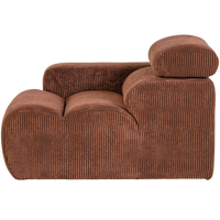 **Stilingas sofos elementas**. Reguliuojama kaklo atrama. Unikalus ir kūrybiškas dizainas. Medžiaga: Mūsų **Ronni** yra **minkštas, briaunotas audinys**. Sudėtis: **88% poliesteris** ir **12% poliakrilas**. Martindale įvertinimas: **100 000**, tinka kasdieniam naudojimui. Audinys yra **stilingas ir patogus**. Matmenys: Aukštis: **86 cm**. Plotis: **109 cm**. Gylis: **113 cm**. Sėdynės aukštis: 45 cm. Svoris: 40 kg. Keliamoji galia: **120 kg**. Priežiūra: Valykite reguliariai. Dėmes valykite kryptimi, kuria eina briauna. Naudokite šiek tiek drėgną, švarią šluostę. Prireikus švelniai nušveiskite **minkštu šepečiu**. Pristatymas: Elementai lengvai surenkami naudojant jau sumontuotus sujungimus.