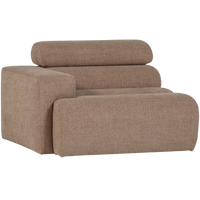**Stilingas sofos elementas**. Reguliuojama kaklo atrama. Unikalus ir kūrybiškas dizainas. Medžiaga: Mūsų **Rilo** yra **minkštas, buklė audinys**. Sudėtis: **100% poliesteris**. Martindale įvertinimas: **100 000**, tinka kasdieniam naudojimui. Matmenys: Aukštis: **86 cm**. Plotis: **109 cm**. Gylis: **113 cm**. Sėdynės aukštis: 45 cm. Svoris: 40 kg. Keliamoji galia: **120 kg**. Priežiūra: Valykite reguliariai siurbliuodami su **minkštu šepečiu**. Dėmėms naudokite vandens pagrindo tirpalą, **švelniai nuvalykite** drėgna šluoste. **Netrinkite, tik nusausinkite**. Venkite ilgo tiesioginio saulės spindulių poveikio. Pristatymas: Elementai lengvai surenkami naudojant jau sumontuotus sujungimus.