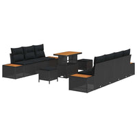 10 dalių sodo sofa rinkinys su pagalvėlėmis Juoda Poli Ratanas Akacijos
