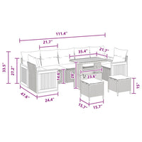 10 dalių sodo sofos komplektas su pagalvėlėmis Juoda Poli ratanas Akacija