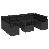 10 dalių sodo sofos rinkinys su pagalvėlėmis juodi poli ratanai