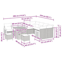 12 dalių sodo sofos komplektas su pagalvėmis Smėlio poli ratanas akacijos