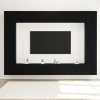 12 dalių TV kabinetas sieniniam montavimui iš juodo ąžuolo inžinerinės medienos