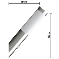 Šie sieniniai šviestuvai pagaminti iš nerūdijančio plieno ir lengvai įrengiami prie sienos ar tvoros. Matinio stiklo dėka, šis šviestuvas skleis gražią ir subtilią šviesą, kuri jūsų neakins. Tinkamas energiją taupančioms E27 lemputėms. Su judesio davikliu, kurio dėka lempa įsijungs, kai bus aptiktas judėjimas.