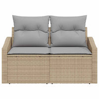 2 vietų sodo sofa su saugojimo vieta ir pagalvėmis, smėlio poli ratanas