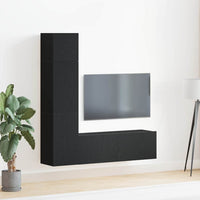 3 dalių sieninis televizoriaus spintelės rinkinys juodos ąžuolo inžinerinės medienos