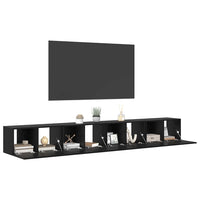 4 dalių televizoriaus spintos komplektas - Montuojamas ant sienos, juodas ąžuolo inžinerinės medienos.