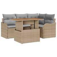 5 dalių sodo sofos komplektas su pagalvėlėm, smėlio spalvos poli ratanas ir akacija.