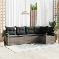 5 dalių sodo sofų komplektas su pagalvėlėmis, pilkas, poli ratanas