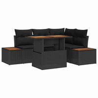 5 dalių sodo stalo komplektas su pagalvėlėm, juodas poli ratanas ir akacija