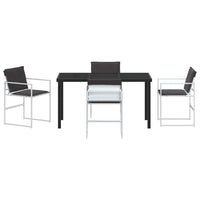 5 dalių sodo valgomojo rinkinys su pagalvėlėmis, baltas tekstilenas ir plienas
