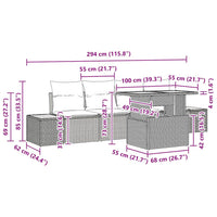 5 dalių sodo valgomojo rinkinys su pilkos spalvos poli ratano akacijos pagalvėlėm