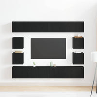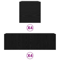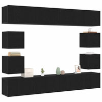 6 dalių pakabinamo TV spintelių rinkinys - juodas ąžuolo inžinerinis medis