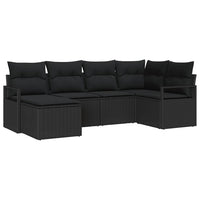 6 dalių sodo sofų komplektas su pagalvėlėm, juodas poli ratanas