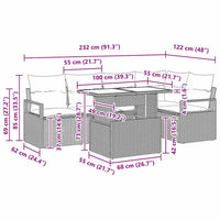 6 dalių sodo sofų komplektas su pagalvėlėmis smėlio spalvos poli ratanas