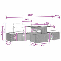 - Funkcionalūs komponentai: Šis rinkinys apima šoninę sofą, centrinės sėdynes, pakoją ir sodininkystės stalą, visi siūlo integruotą saugojimą. Šis daugiafunkcinis dizainas suteikia praktinį naudojimą papildomiems daiktams, išlaikant tvarkingą ir organizuotą erdvę nepažeidžiant stiliaus.
