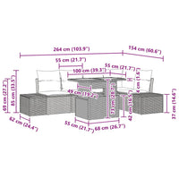 6 dalių sodo valgomojo rinkinys su pagalvėlėm, smėlio spalvos polyratanas, akacija.