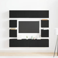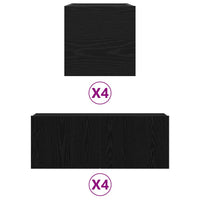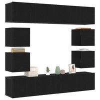6 dalių TV spintelės komplektas, montuojamas ant sienos, juoda ąžuolo inžinerinė mediena
