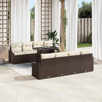 7 dalių sodinė sofa su ruda poliratanine pagalvėle