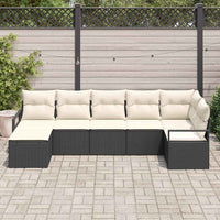 7 dalių sodo sofos komplektas su pagalvėlėmis, juodas poly rattan.