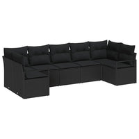 7 dalių sodo sofų komplektas su pagalvėlėmis, juodas poli ratanas