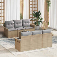 7 dalių sodo sofų komplektas su pagalvėlėmis smėlio spalvos poli rattan