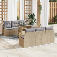 7 dalių sodo sofų komplektas su pagalvėlėmis, šviesiai smėlio spalvos poli rattan