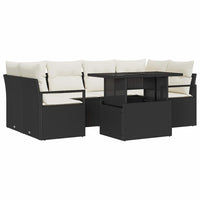 7 dalių sodo sofų rinkinys su pagalvėlėmis, juodas poli ratanas.