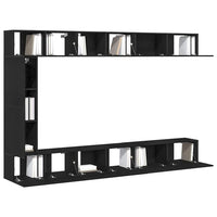 7 dalių TV spintelės rinkinys, montuojamas ant sienos, juoda ąžuolo inžinerinė mediena