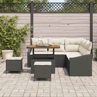 8 dalių sodo sofos komplektas su pagalvėlėmis Juodas Poli ratanas Akacija