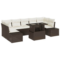 8 dalių sodo sofos komplektas su pagalvėlėmis, rudos spalvos poli ratanas
