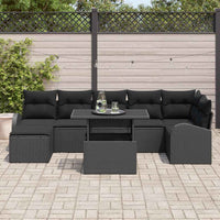 8 dalių sodo sofos komplektas su pagalvėmis, juodas pintas poliratanas