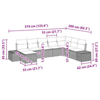 8 dalių sodo sofų komplektas su pagalvėlėm - smėlio spalvos poliratanas