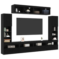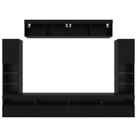 8 dalių TV sienos vienetai su LED Juodasis ąžuolas Inžinerinė mediena