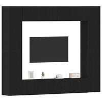 8 dalių TV spintelės rinkinys - pakabinamas, juodas ąžuolas, inžinerinė mediena