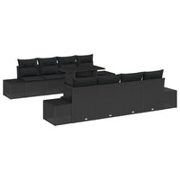 9 dalių sodo sofos komplektas su pagalvėlėmis, juodas poli ratanas.