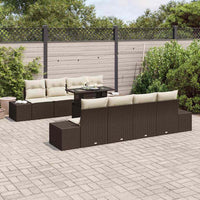 9 dalių sodo sofų komplektas su pagalvėlėm, rudas, polirataninis