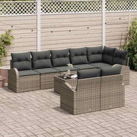 9 dalių sodo sofų komplektas su pagalvėlėmis, pilkas poli ratanas.