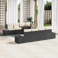 9 dalių sodo valgomojo komplektas su pagalvėlėm, juodas poliratanas, akacijos