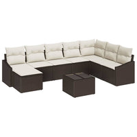 9 dalių sodo valgomojo komplektas su pagalvėlėm, rudas poli-ratanas