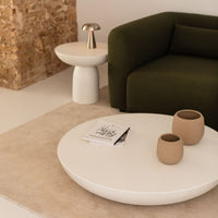 Didelis apvalus kavos staliukas ZMAORKU Ø105 cm iš cemento – minimalistinio dizaino baldas su moderniomis linijomis. Pagamintas iš aukštos kokybės betono, pasižymi ilgaamžiškumu ir stabilumu. Guminės apsauginės kojelės saugo grindis.